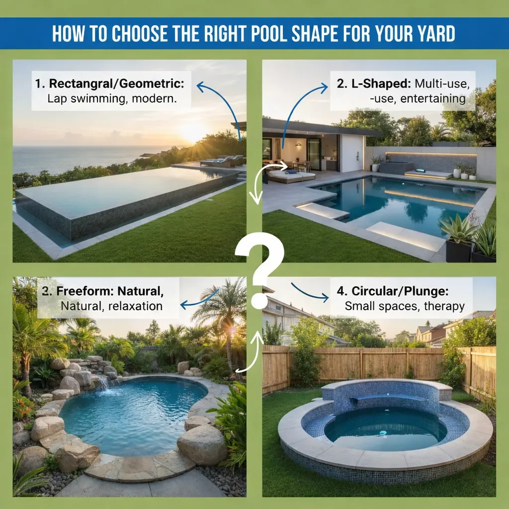 Consult a professional pool designer who can assess your property’s topography, soil conditions, drainage, and local building codes. Most yards can accommodate various shapes with proper planning and engineering.